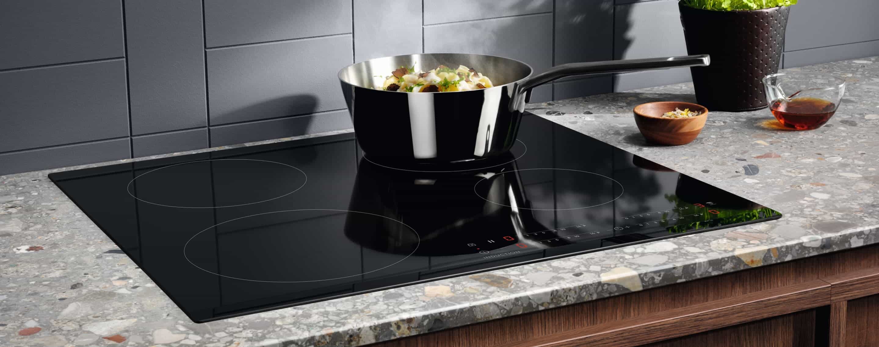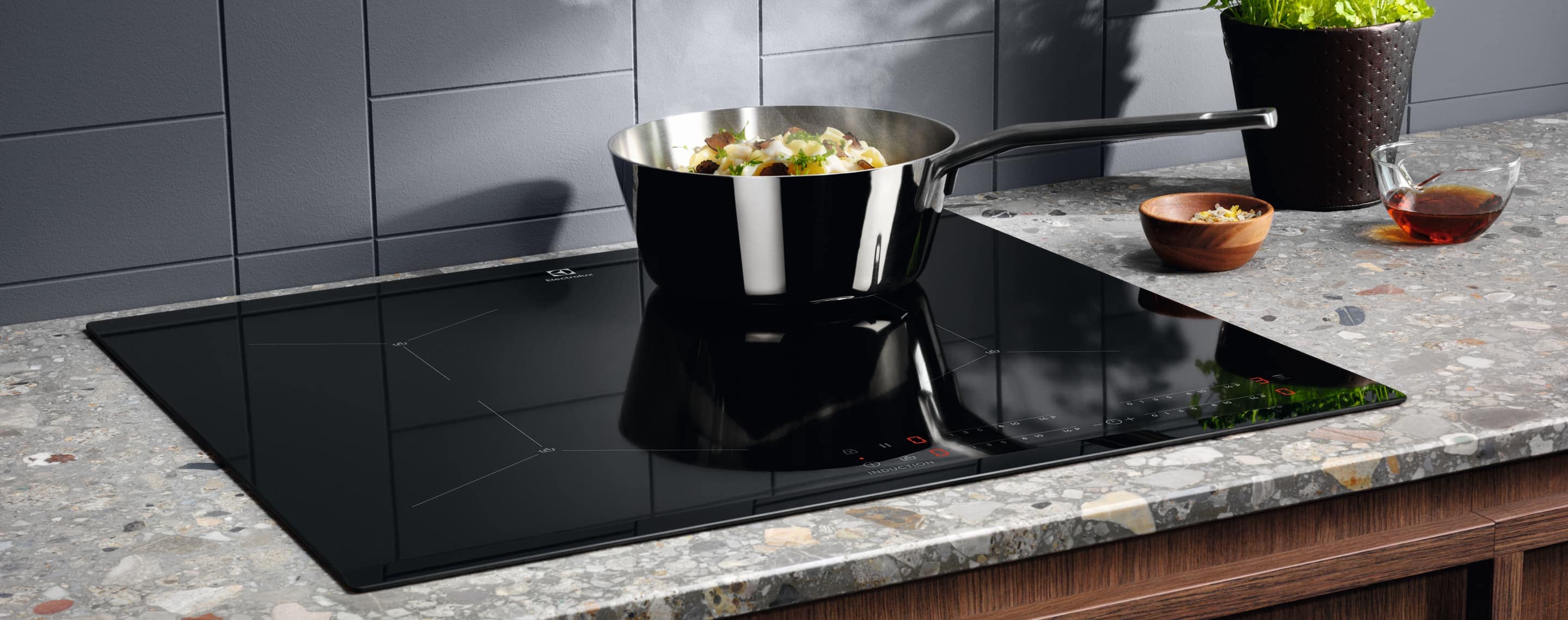 Indukční technologie znamená, že je teplo dodáváno rychle a přesně na správné místo, takže okolní plochy zůstávají chladné a bezpečné. Okamžitě také reaguje na změny teploty. A díky hladkému povrchu se snadno čistí.