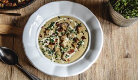 Tereza si naštěstí umí poradit: „Krémové polévky jsou na foodstyling docela náročné, protože jsou ploché a bez struktury. Pár triky z ní ale vykouzlíte úplně něco jiného. Vyberte jednoduchý bílý talíř a hezkým detailem, použijte čerstvě nasekané bylinky, krutony a kontrastní chilli papričku.“