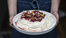 Austrálie a Nový Zéland se už roky přou o původ sněhového dezertu Pavlova, který je pojmenován po ruské primabaleríně. A není divu, jde totiž o výborný zákusek připomínající obří sněhovou pusinku, která uvnitř zůstává lahodně vláčná. Kouzlu Pavlovy propadli i Marika a Jirka. Manželé v kuchyni ovšem vyměnili lesní plody za nakyslou karamelizovanou rebarboru, která skvěle ladí s krémem z bezlaktózového kokosového mléka.