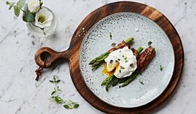 Chřest je typickým zástupcem sezónní zeleniny. Marika s Jirkou ho rádi připravují se slaninou, zastřeným vejcem a doma vypěstovanými klíčky.