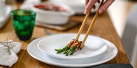 „Prostřený stůl musí jednak dobře vypadat, ale servírovaní také musí být praktické. Když máte rodinu, nechce se vám kvůli každé maličkosti odcházet od stolu, proto je fajn mít všechno hezky po ruce. Protože každý preferuje jiné chutě, dochucujeme některé pokrmy až během stolování. Navíc kvůli dcerám méně solíme, a tak si svou porci doladíme až při podávání. Stůl plný nádob s dobrým jídlem je zárukou toho, že se do akce zapojí celá rodina, vzájemně si věci podáváme a při tom si povídáme. Díky tomu se stolování promění v příjemný zážitek,“ shodují se Jana a Štěpán.