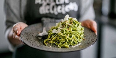 Jakmile vyzkoušíte domácí těstoviny, žádné jiné už nebudete chtít. Jana je připravuje z italské semolinové mouky, která se vyrábí z tvrdé pšenice. S tvarováním těstovin vám pomůže robot se speciálním nástavcem. Jana se rozhodla zvolit tagliatelle, tedy dlouhé širší nudle, které vytvarovala do porcí ve tvaru hnízda. Štěpán se mezitím postaral o domácí pesto s pecorinem, parmezánem, kvalitním olivovým olejem a medvědím česnekem. Neodolatelná kombinace v italském stylu.