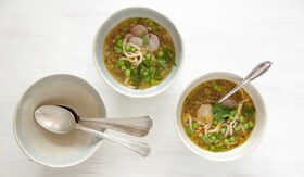 Základem barevné jarní polévky je poctivý slepičí vývar.
