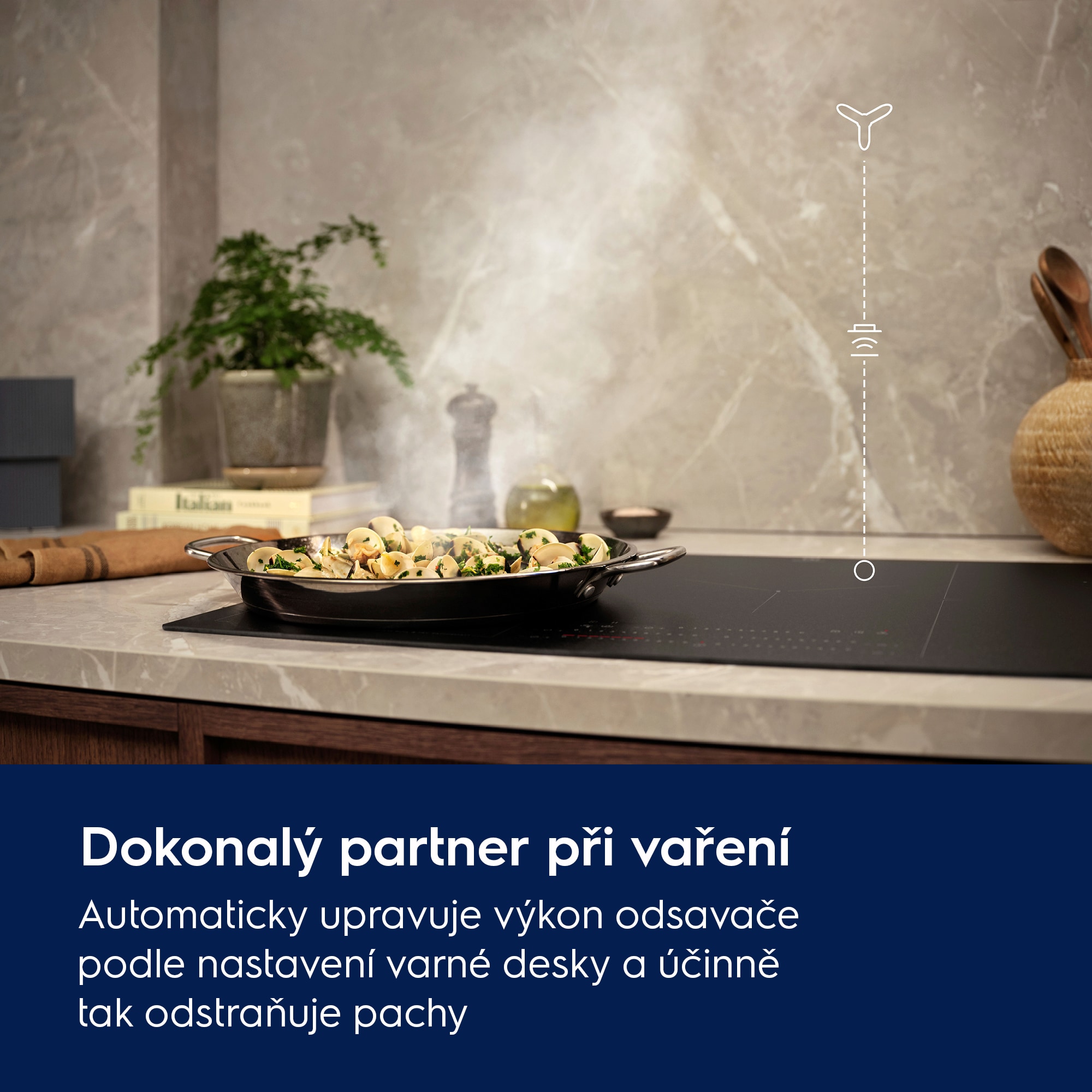 Odsavač par 600 Hob2Hood® automaticky ovládá nastavení odsávání. V průběhu vaření se ventilátor přizpůsobuje změnám nastavení varné desky. Nic vás tak při vaření nebude rozptylovat.