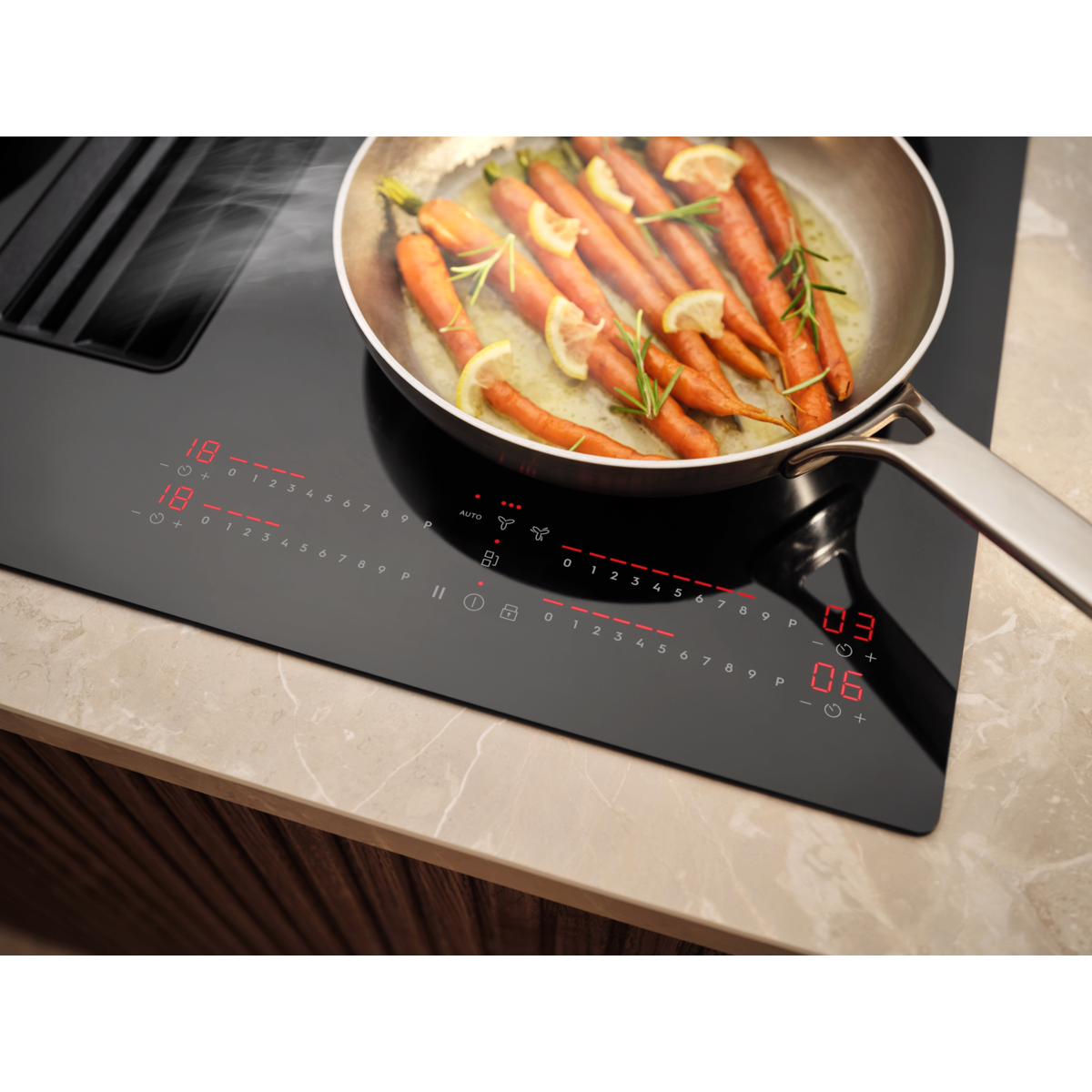 Využijte hned několik výhod indukční varné desky, která se vejde do 60cm skříňky a má vestavěnou digestoř pro optimální průtok vzduchu. Varná deska 600 Bridge s odsavačem má také funkci Bridge, která vám umožní spojit dvě varné zóny do jedné větší oblasti.