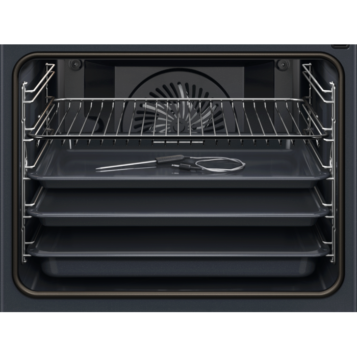 Horkovzdušná trouba 800 SenseCook disponuje seznamem receptů a přednastavených programů, které vám umožní snadno připravit jakékoliv jídlo. K dispozici je také teplotní sonda, která spolehlivě hlídá teplotu uvnitř pokrmu. Pro trvale spolehlivé výsledky v každém pokrmu.