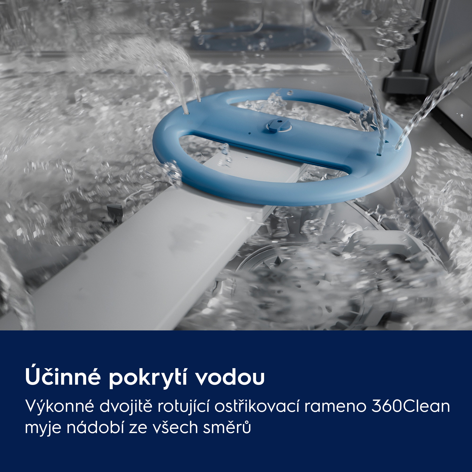 Dvojitě rotující ostřikovací rameno čistí ze všech směrů