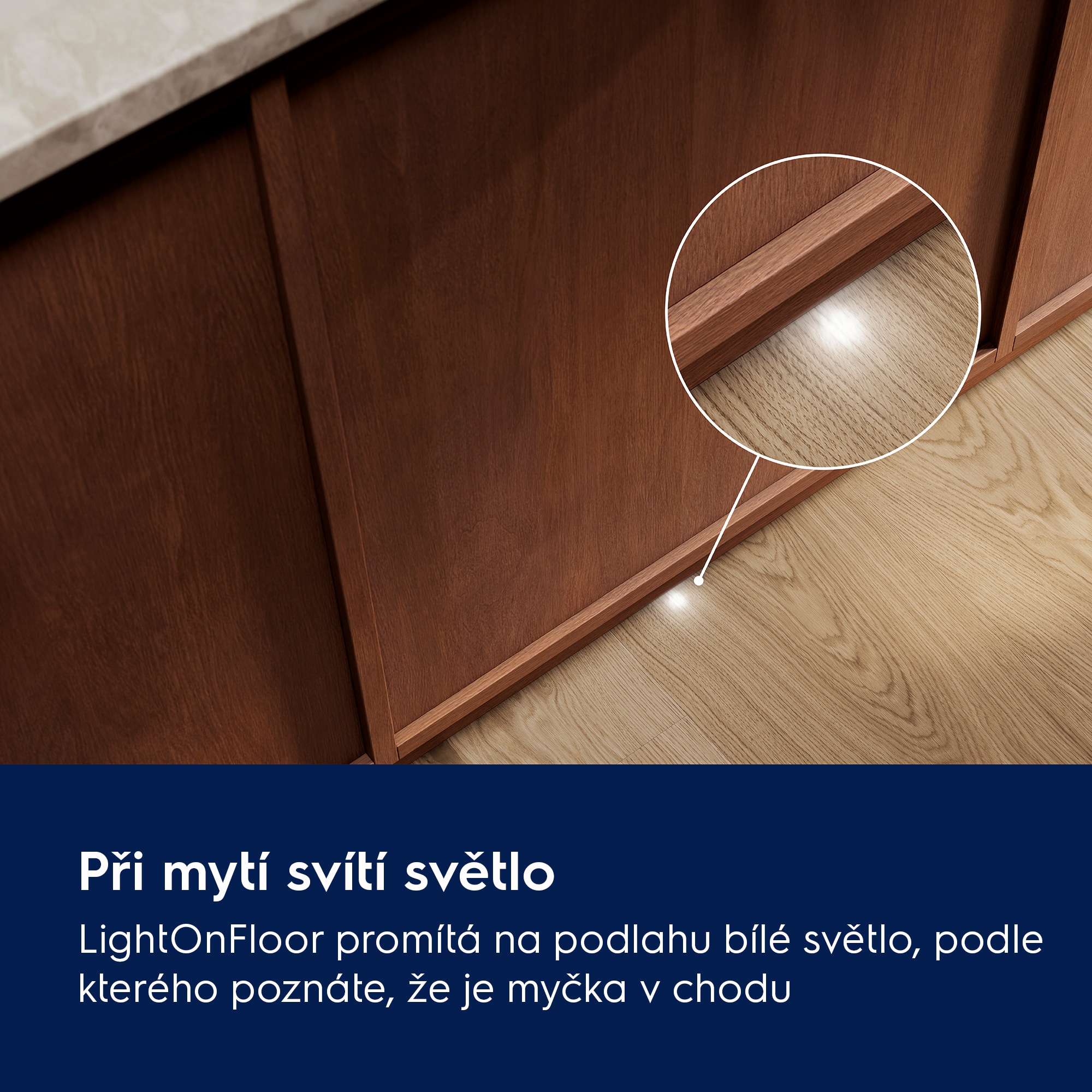Podle světla svítícího na podlahu poznáte, že myčka běží