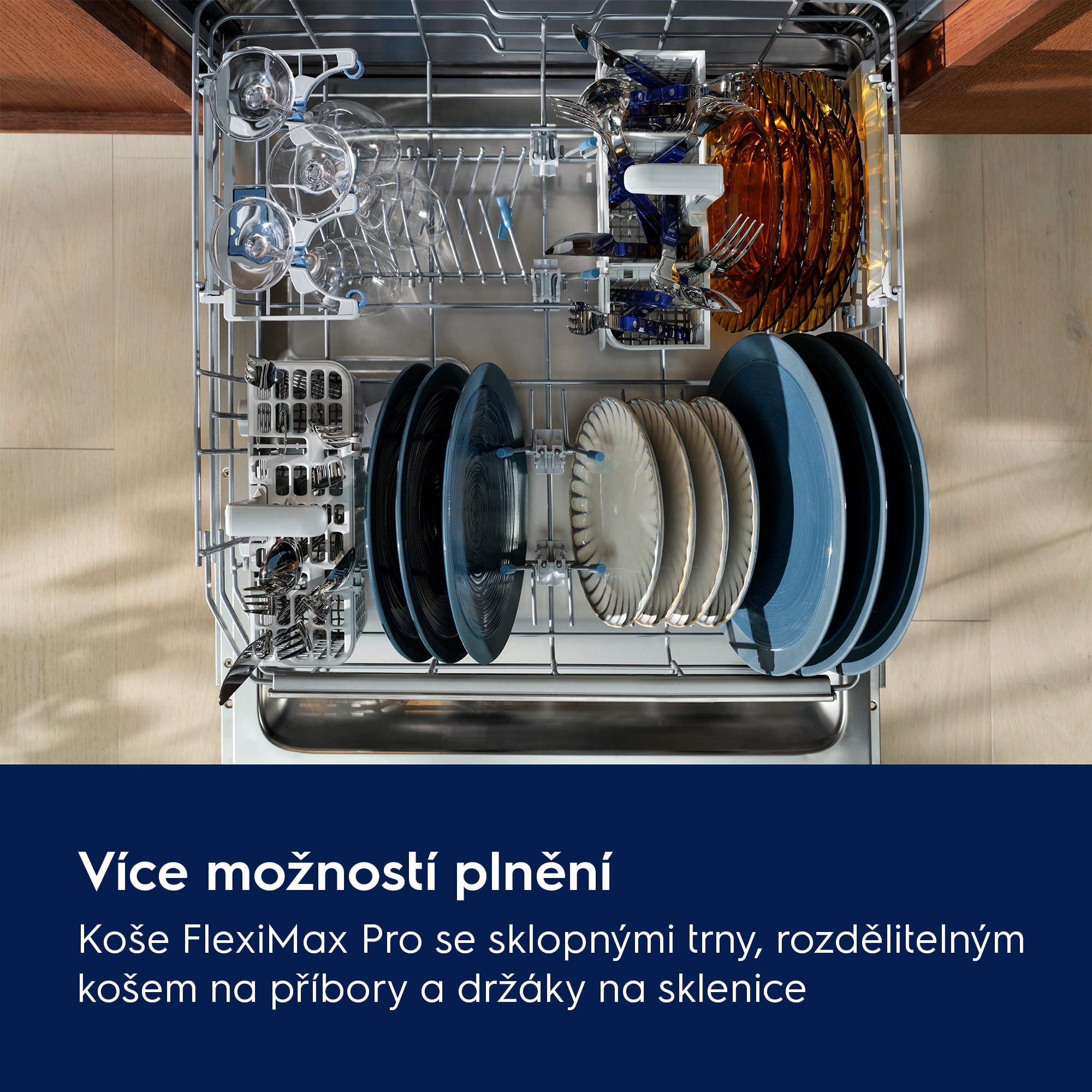 Zdaleka nejjednodušší mytí nádobí. Do univerzálních košů řady 900 se vejdou i polévkové mísy, karafy a sklenice na víno, zatímco v nastavitelném příborníku je dost místa i na malé šálky. Výkonné mytí odstraňuje zaschlé a připečené zbytky jídla s minimální spotřebou vody.