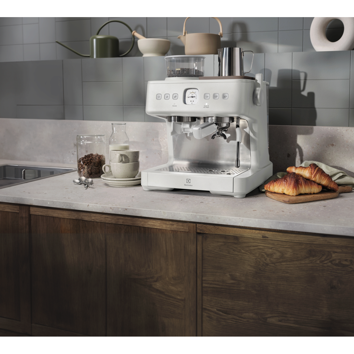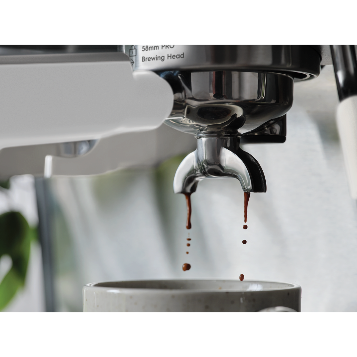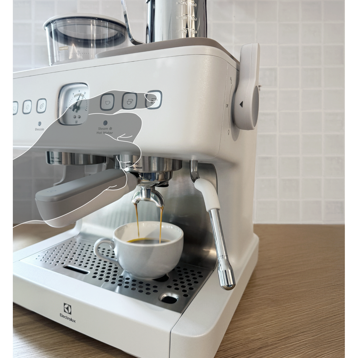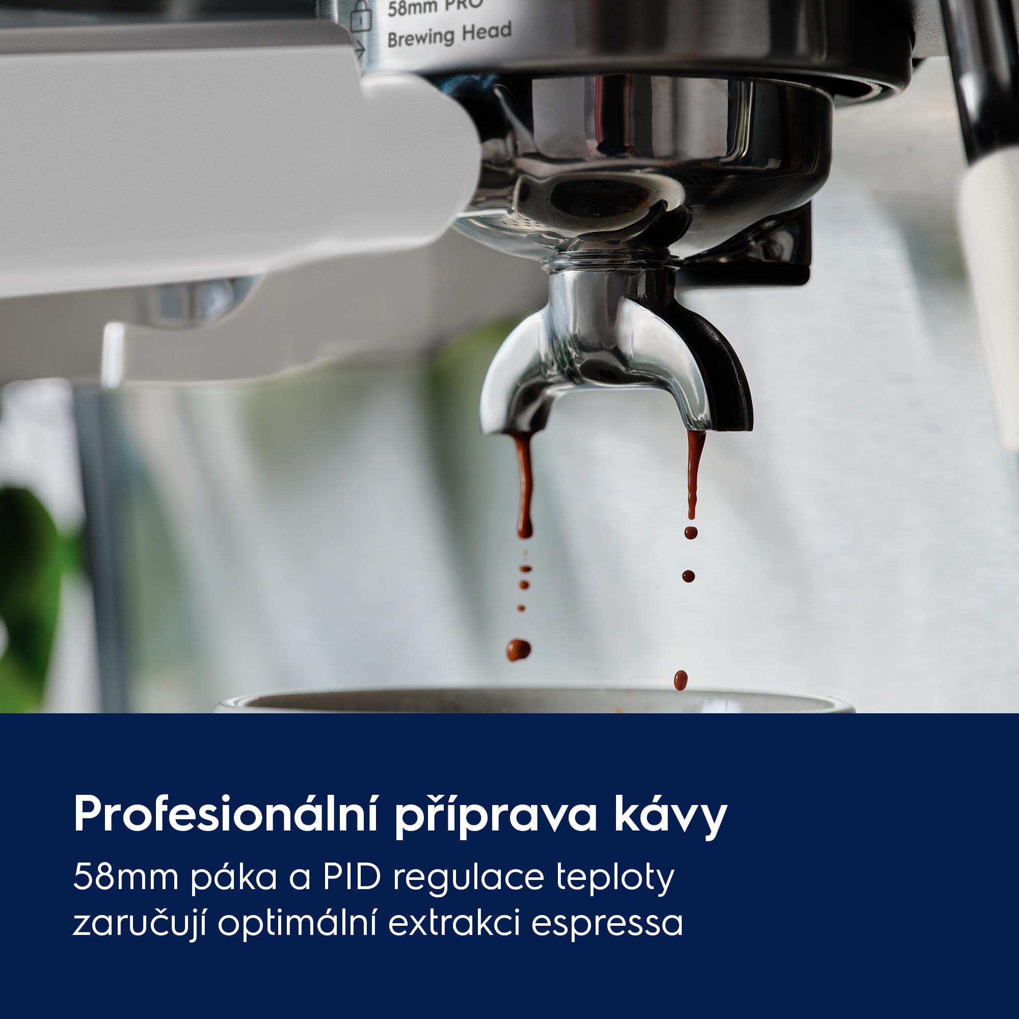 Technologie dvojitého Thermoblocku zajišťuje konzistentní teploty při přípravě kávy a mléčné pěny. Efektivní systém zahřátí vám umožňuje současně provádět extrakci espressa a šlehání mléka, takže si můžete čerstvě připravenou kávu vychutnat ihned a bez čekání.