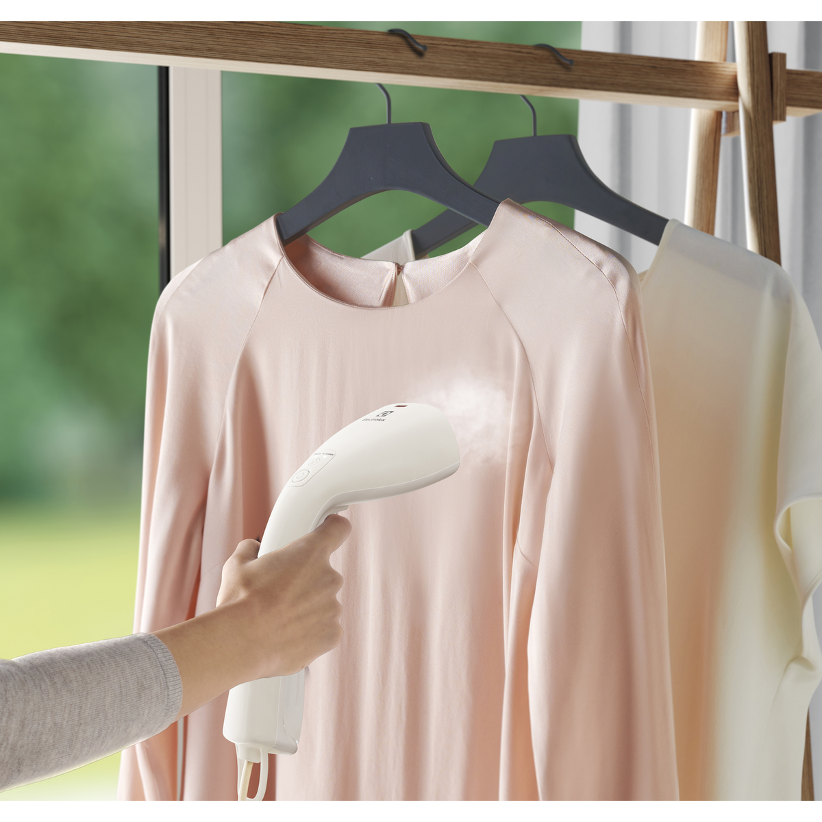 Thanks to an easy set-up, the Refine 700 is ready to use in seconds. Simply pick up, choose from the two steam settings and use whenever your outfit needs to be de-wrinkled or refreshed. No need for an ironing board, you can steam directly onto the hanger.