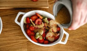 Dejte směs zapéct do parní trouby na 30-40 minut, dokud drobenka na povrchu nezezlátne. Ovoce pustí svěží sladkokyselou šťávu, která perfektně ladí se sladkou bezlepkovou drobenkou. Dobrou chuť!