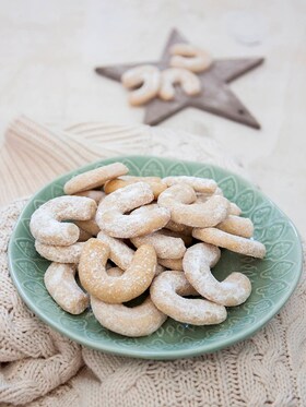 Lehce zchladlé rohlíčky obalte v moučkovém cukru. Přendejte je do krabice od bot a nechte je alespoň 14 dní rozležet v chladu.