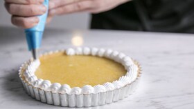 Do vnitřku parní trouby nalijte 100 ml vody. Otočte ovladačem na symbol PlusSteam a zahřejte troubu na 150 °C. Stiskněte tlačítko PlusSteam a vložte koláč do trouby. Pečte 20 minut nebo dozlatova. Nechte citronový koláč úplně vychladnout a ozdobte ho pusinkami. A proč nezkusit pomocí kuchyňského plamenometu pusinky zkřehčit a dodat jim barvu?