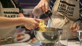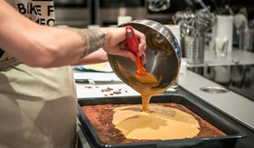 V průběhu pečení si připravte karamelovou omáčku. Dejte cukr do hrnce a začněte zahřívat. Cukr se rozpustí a jakmile začne pěnit, máte hotovo. Opatrně přidejte zbylé ingredience a nechte ještě krátce probublat, dokud se karamel nerozpustí a dokud se všechny ingredience nepropojí.