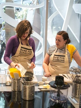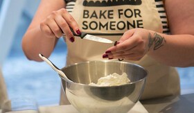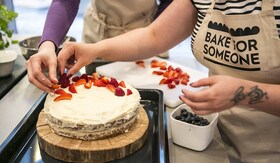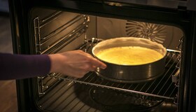 Do vnitřku parní trouby nalijte 100 ml vody. Otočte ovladačem na symbol PlusSteam, zahřejte troubu na 180 °C. Stiskněte tlačítko PlusSteam a počkejte pět minut. Vložte dort do trouby a pečte 15 minut nebo dokud není těsto hotové. Před ozdobením nechte dort zchladnout na roštu a poté podélně rozřízněte. Stejně tak postupujte při pečení druhého korpusu.