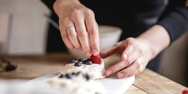 Křehký dezert s ovocem se vám rozplyne na jazyku.