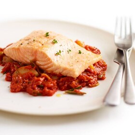 2 rajčata, 50 g čerstvého špenátu, 1 kuřecí prsa, 1 lžička soli, 1 lžička pepře, 2 lžíce čerstvé bazalky, 2 lžíce olivového oleje