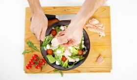 Přísady na lososa se zeleninovým salátem a pošírovaným vejcem