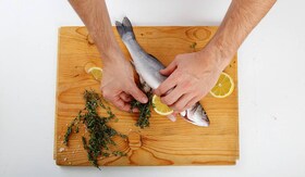 Mořského vlka vykucháme, odřízneme ploutve, kůži, a šupiny na rybě necháme. Omyjeme ji pod tekoucí vodou a důkladně osušíme. Do břišní dutiny vložíme dva plátky citronu a snítku tymiánu.