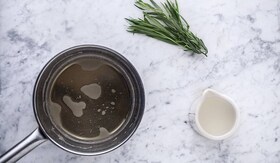 100 ml cideru ( jablečný alkoholický nápoj), 100 ml 33% smetany, 1 lžička lístků estragonu, sůl