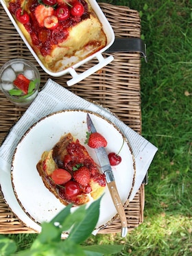 Letní snídaně v trávě ve francouzském stylu a na sladko. V tomto receptu od Slepičárna blogu se používá pravá francouzská brioška, která má velmi typickou sladko-slanou chuť. Pokud ji v obchodě neseženete, zvládnete si ji upéct i sami. Kombinace s čerstvými jahodami, třešněmi a vanilkou chutná vážně božsky. A když přidáte během pečení trochu páry, jako my v troubě PlusSteam, bude toust uvnitř vláčný a na povrchu krásně křupavý.