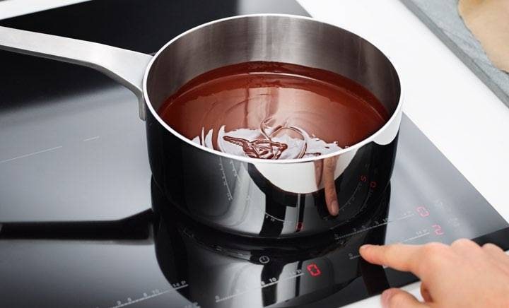 1Rozpusťte čokoláduRozpusťte ½ šálku kvalitní hořké čokolády na indukční varné desce. Zahřívejte na nízký výkon, dokud není čokoláda zcela hladká.