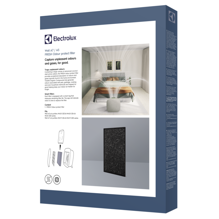 Containing a large volume of advanced coconut shell active carbon, the FRESH odour protect filter provides exceptional absorption of odours and gases typically found in the home environment. Volatile Organic Compounds that generate odours associated with pets, garbage, cooking and even household chemicals are trapped for good helping keep your indoor air fresher for longer.