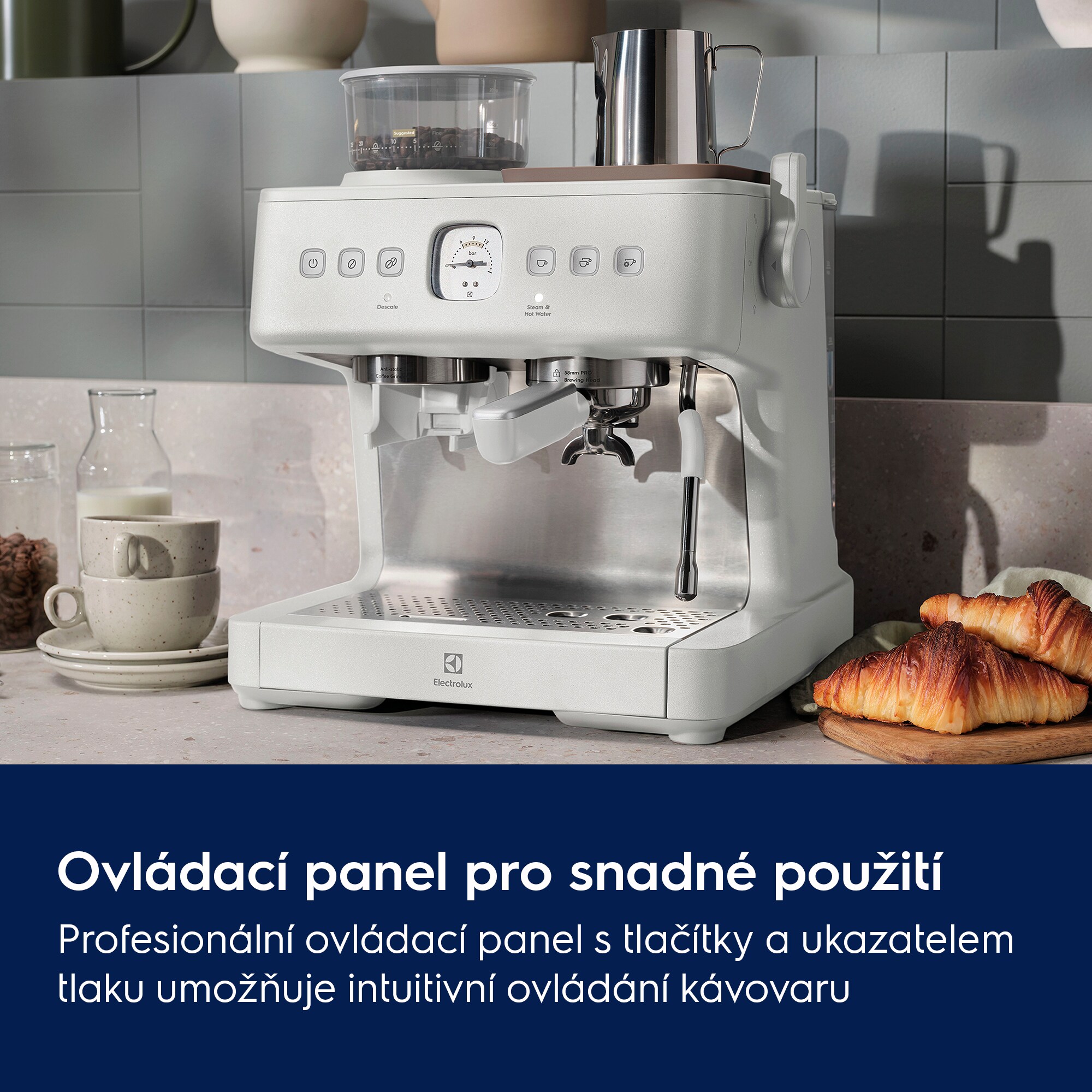 Připravte si kávu jako od baristy. Díky profesionálnímu ovládacímu panelu, tlačítkům a tlakoměru je nastavení a provoz kávovaru intuitivní. Dopřejte si lahodný šálek kávy pouhým stisknutím tlačítka.