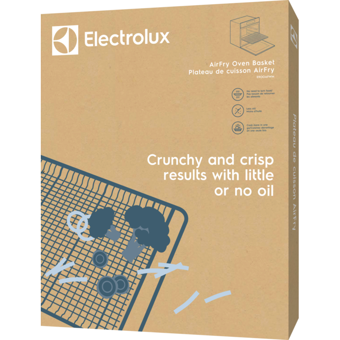 Enjoy crunchy and evenly cooked food like fries, vegetables and chicken wings, with little or no oil with the AirFry oven basket. The specially designed mesh structure allows for more air circulation and continual air flow. No need to turn the food.