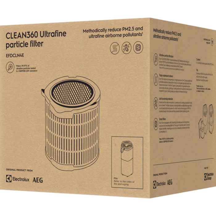 Každý filtr CLEAN360 obsahuje technologii HEPA13, jež zajišťuje 99,97% filtraci částic o velikosti 0,3 µm a zahrnuje i částice do 0,1 µm, čímž pomáhá dosáhnout absolutně minimální úrovně PM2.5.