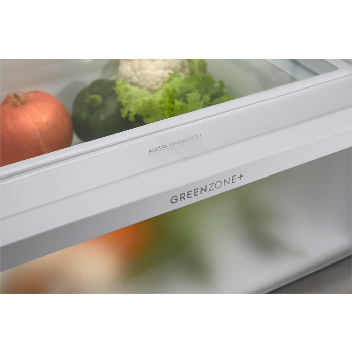 Chladnička s mrazničkou 700 GreenZone+ je vybavena speciální zásuvkou regulující nadměrnou kondenzaci a udržuje vyváženou vlhkost. Pomáhá tak chránit potraviny před zkažením. V potravinách zůstává zachováno až 95 % vitamínů díky správné hladině vlhkosti.*