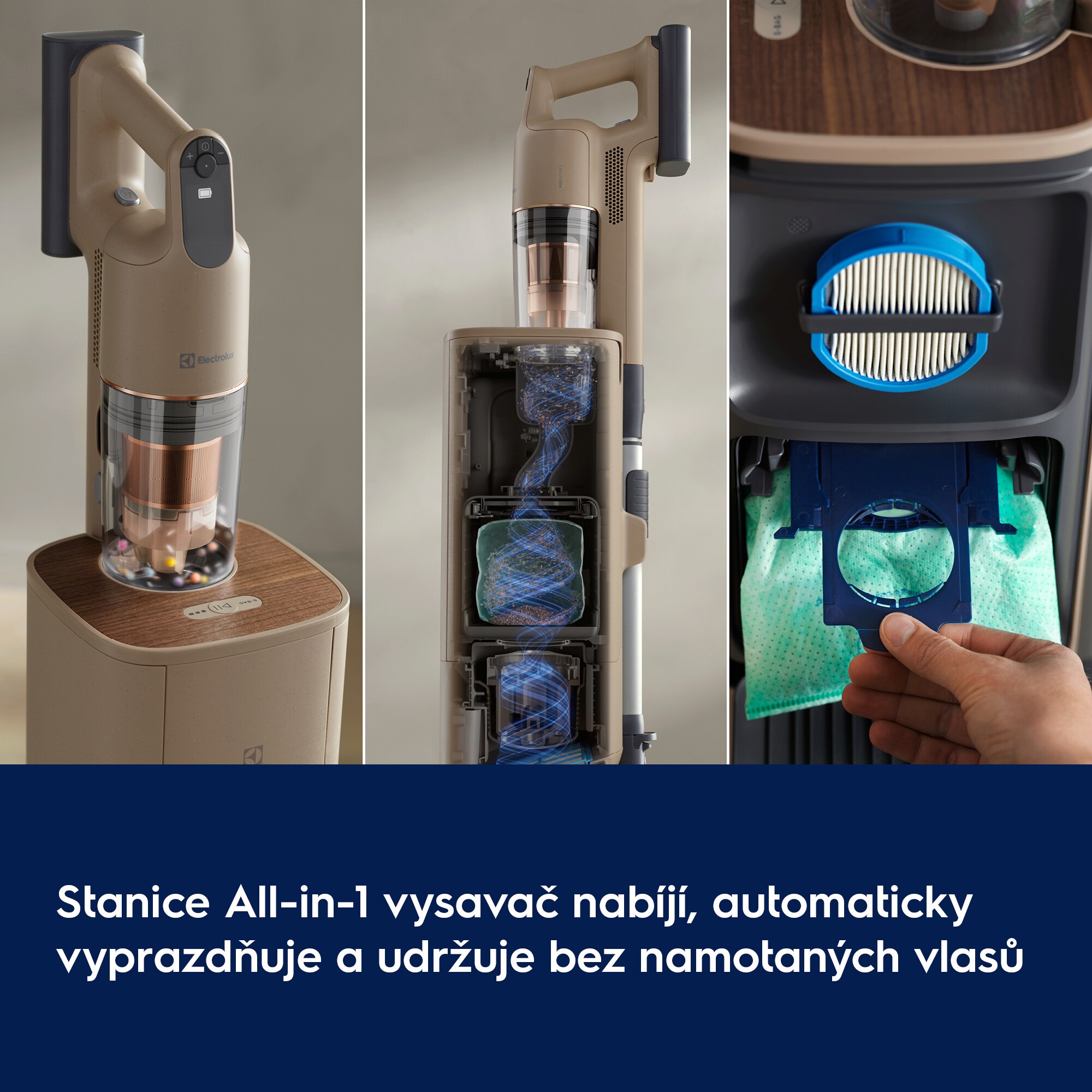 Díky naší nejpokročilejší vyprazdňovací stanici All-in-1 je vysavač stále nabitý a připravený k dalšímu vysávání. Zachycený prach se automaticky vysypává do sáčku Anti-Allergy S-bag®, bez oblaků prachu. Čištění filtrů zjednodušuje vestavěná hadice.