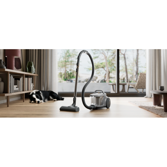 Vysavač byl navržen speciálně pro majitele domácích mazlíčků - turbo hubice, nádobka o objemu 2 l, kompaktní design pro snadné skladování a cyklónový separátor pro výkon bez ucpávání. Díky HEPA filtru a recyklovaným plastům je funkční a udržitelný.