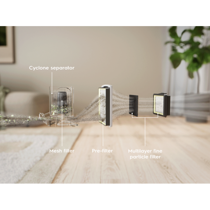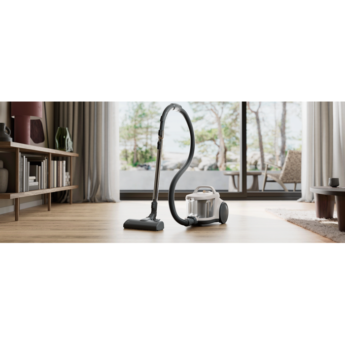 Navržen pro pohodlí. S nádobkou o objemu 2 l, kompaktním designem pro snadné skladování a cyklónovým separátor pro výkon bez ucpávání. Díky HEPA filtraci a hubici CombiFloor důkladně vysaje různé povrchy.