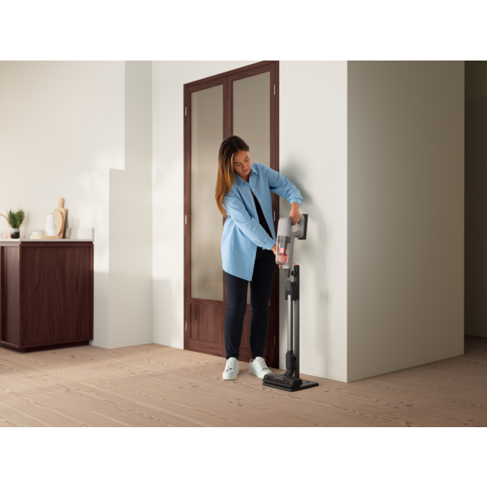 Pečlivý úklid bez ohledu na typ povrchu, s tyčovým vysavačem 700 Animal. Spotřebič je ideální pro odstranění zvířecích chlupů a je také ekologicky šetrnější volbou, protože 60 % plastů použitých na jeho výrobu je z recyklovaných materiálů.