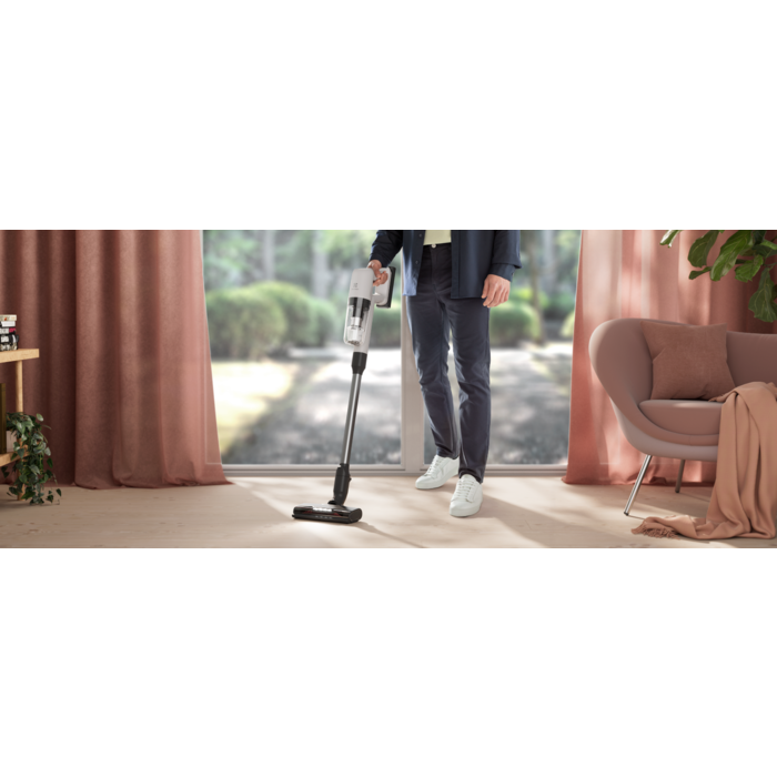 Vysavač řady 700 vyčistí celou vaši domácnost, včetně nejužších mezer a zákoutí. Objevte výkonný a všestranný tyčový vysavač 700 Hygienic, který díky přiložené motorizované hubici BedProPowerUV+ zapadá do série modelů Allergy a je tak ideální pro odstranění bakterií, pylů z pohovek a matrací.