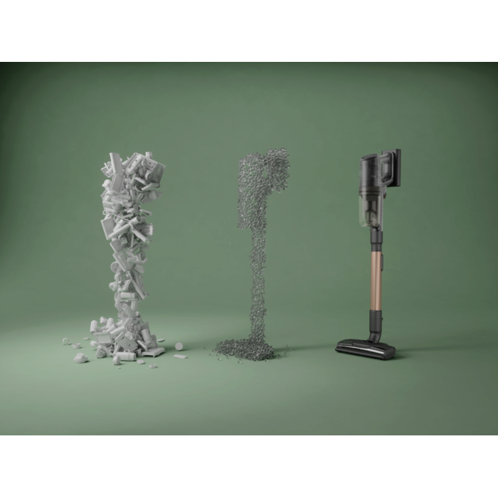 Měřeno oproti předchozímu modelu tyčového vysavače 800 s nádobou na prach plnou prachu DMT (standardizovaný test) podle normy IEC 62885-4 ed. 1