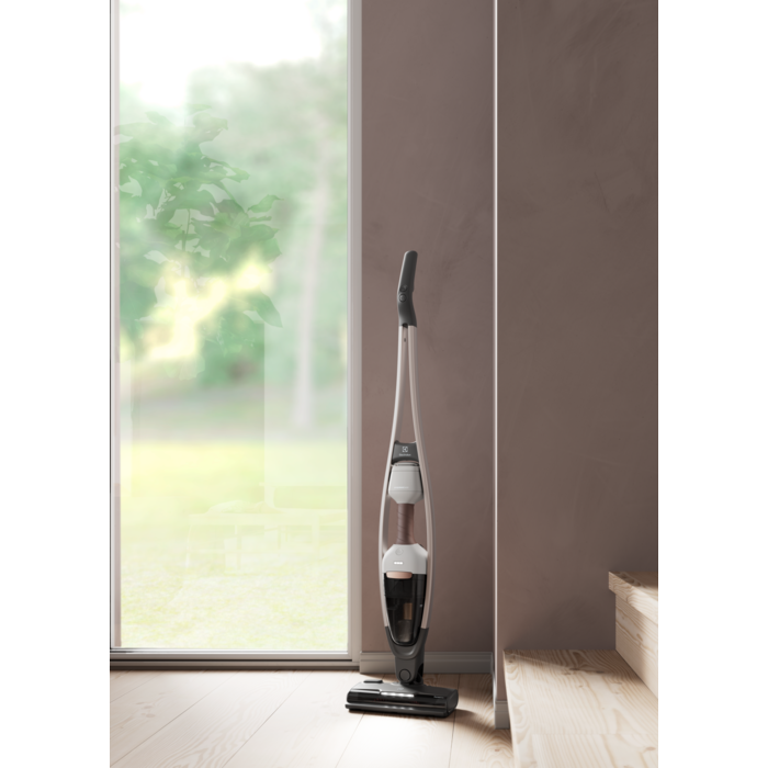 * V porovnání s modelem Electrolux WQ61-42GG na základě interních testů. Výkon měřený na základě sběru prachu podle 2. vydání 59F-IEC 62885-2 FDIS. Úroveň hladiny hluku snížená o polovinu (-3dBA), která byla měřena na ruční jednotce vysavače podle ISO 3743.