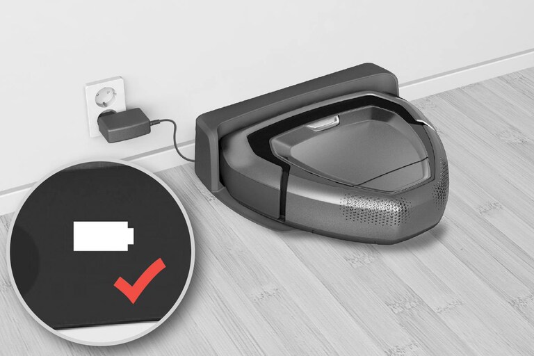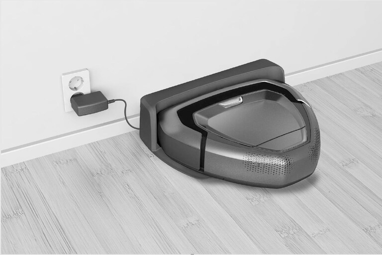Krok 6Vložte robota zpět do nabíjecí stanice. Nyní můžete robota opět ovládat přes aplikaci. V případě, že jste museli provést nejprve aktualizaci, než jste robot nastavili, můžete nyní pokračovat v konfiguračním postupu v aplikaci na chytrém telefonu.