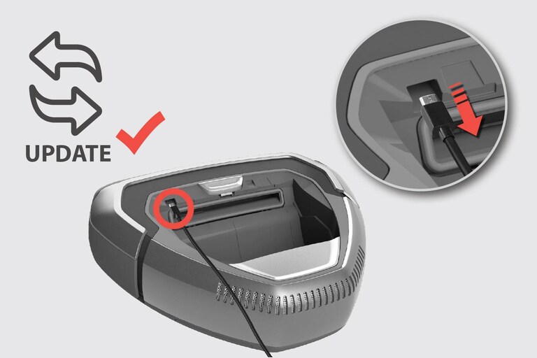 Robot získává softwarové aktualizace automaticky skrze aplikaci v chytrém telefonu. Software lze také aktualizovat přes USB, kdy se řiďte těmito pokyny a stáhněte si nejnovější softwarový soubor z webové stránky.